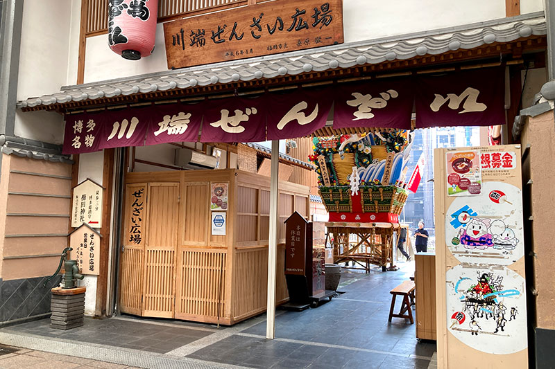 また、ぜんざい広場には「八番山笠 上川端通」の飾り山笠が常設されています。