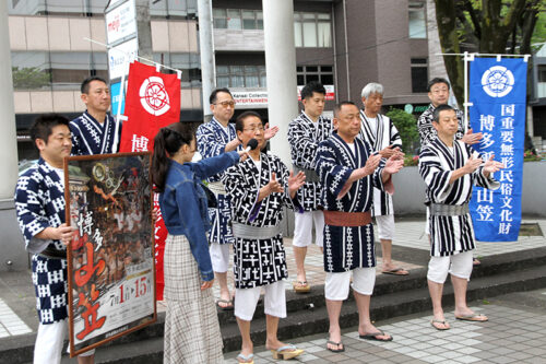 博多祇園山笠振興会が、『アサデス。』の名物コーナーで参加者募集のPRを行いました