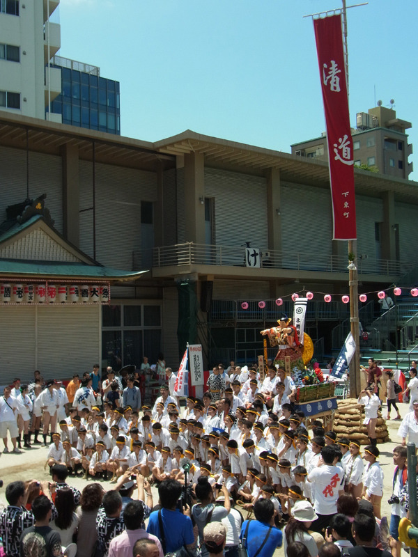 千代流の子供山笠は午前11時より。千代流子供山笠初の櫛田入りを見届けようと千代流の父兄らが大勢集まり、 桟敷席はとても賑わいました。