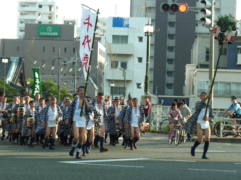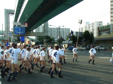 その後、二番山の恵比須流、三番山の土居流・・・と次々と、各流が筥﨑浜に向かって走っていきます。