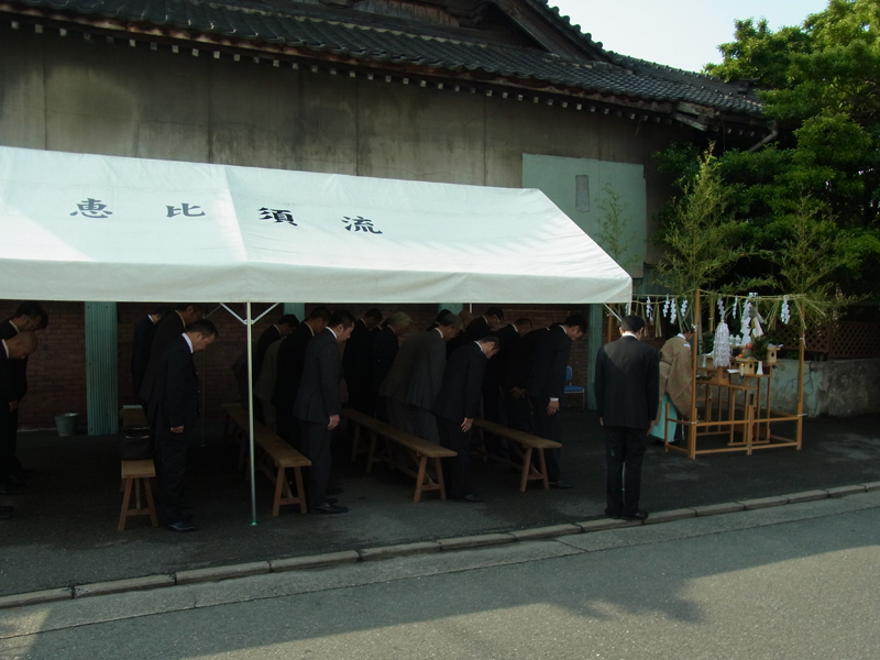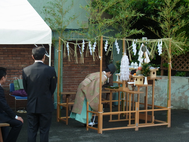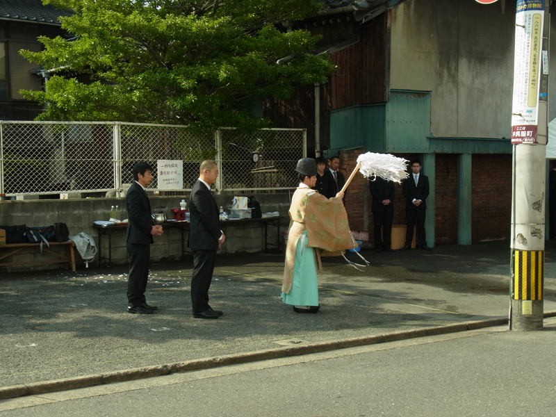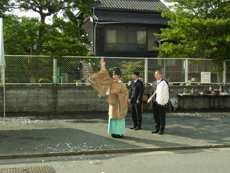 長法被の解禁は6月1日のため、6月1日以前のこの地鎮祭はスーツでの正装で行われています。