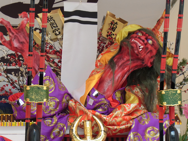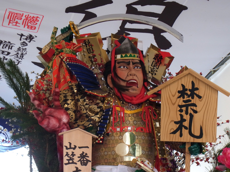 見所は、力強い渡辺綱の人形に対して、見送りがおどろおどろしい鬼という組み合わせ。京都の一条戻り橋の上で渡辺綱が鬼の腕を切ったシーンを表と見送りで描いている迫力のある飾りです。
