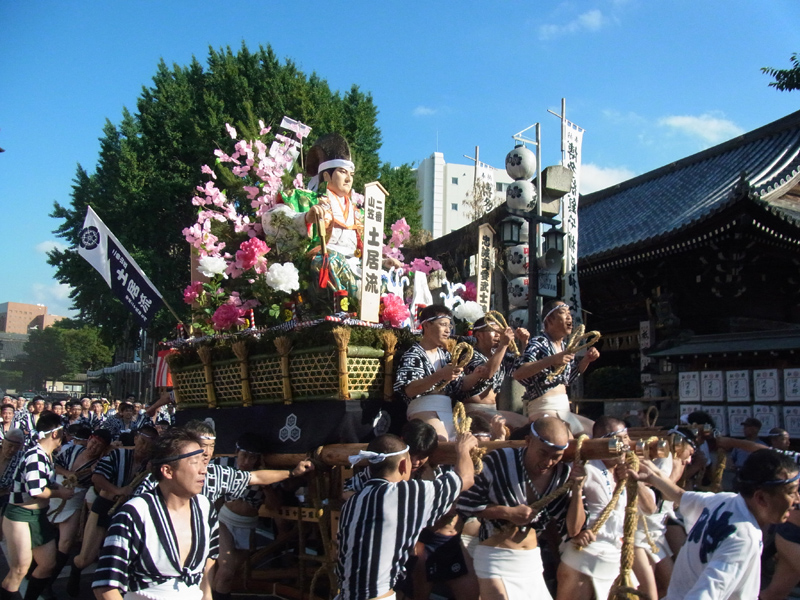 中洲流の流舁きに子供達を杉壁内に乗せて舁きます。乗った子供達も大人の山の迫力にとても喜んでいました。