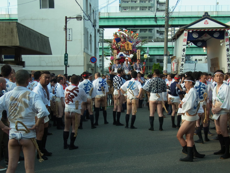 夕方午後6時からは、恵比須流、そして東流が舁き出します。