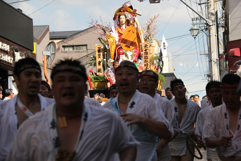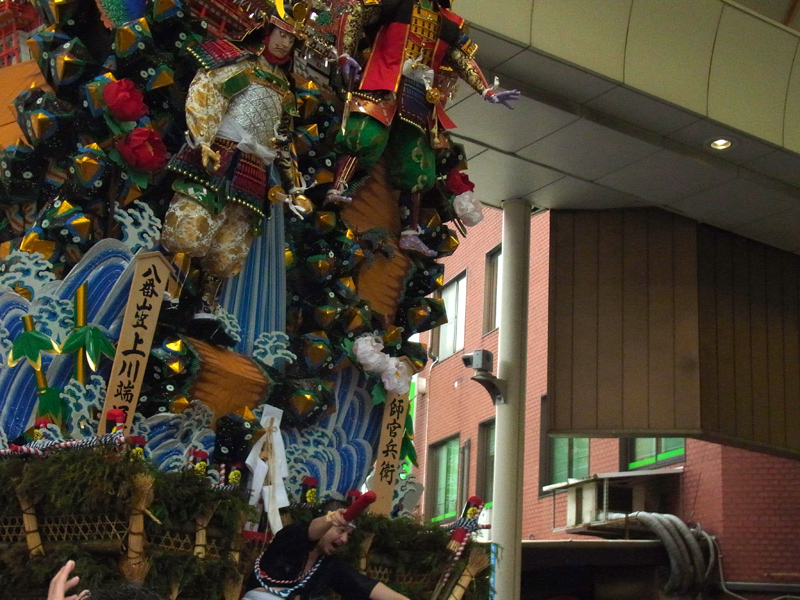 八番山・上川端通の走る飾り山が、上川端商店街のアーケードに戻ってきました。