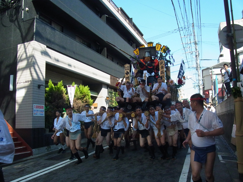 中洲流は日差しが厳しい午後4時から舁き出し、櫛田神社にて櫛田入りを行った後、東流の流区域である呉服町へ舁き入れました。