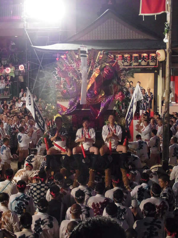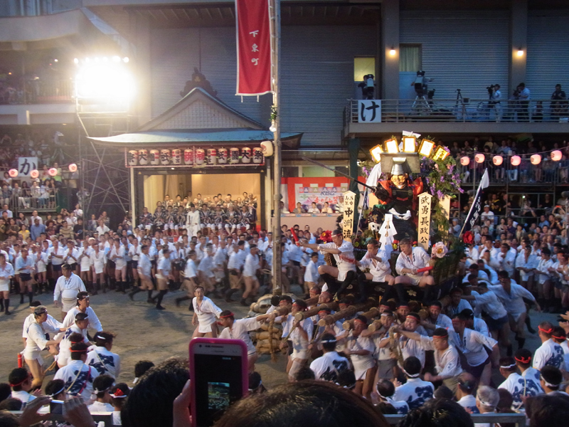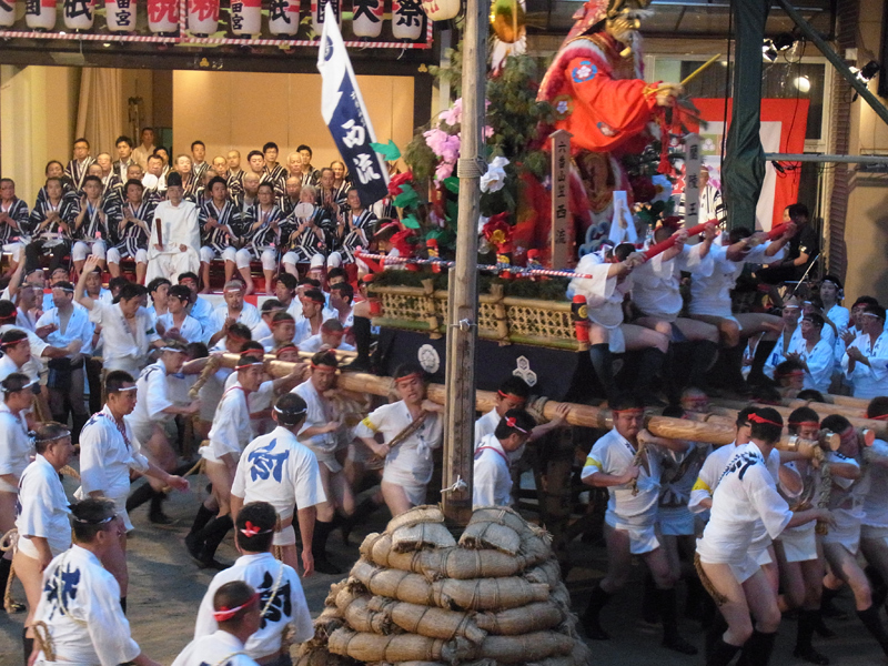 その圧倒的な体躯からスモークを勢いよく吐きつつ、豪快に清道旗を一周。舁き手のスムーズな舁き回りに、見物客は大きな歓声を上げます。タイムは49秒78とかなりの好タイムを叩き出しました。