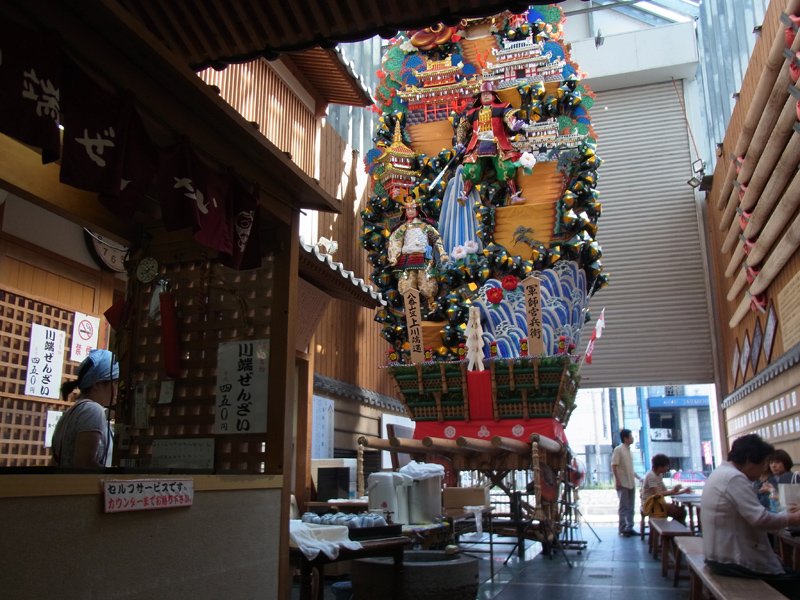 飾り付けが終わったばかりの飾り山は、川端ぜんざい広場のかき氷に涼を求めてやってくるお客様の目を楽しませていました。
