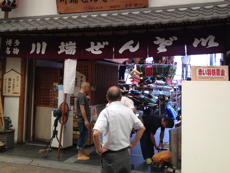 追い山が終わって5日経ちますが、7月20日(土)に早くも上川端商店街にある川端ぜんざい広場にて今年の八番山・上川端通の飾り山が公開されました。