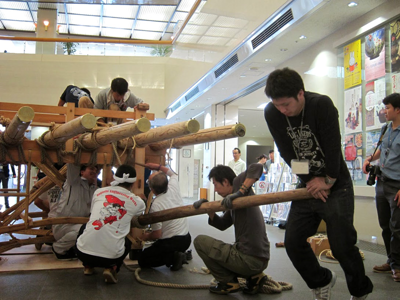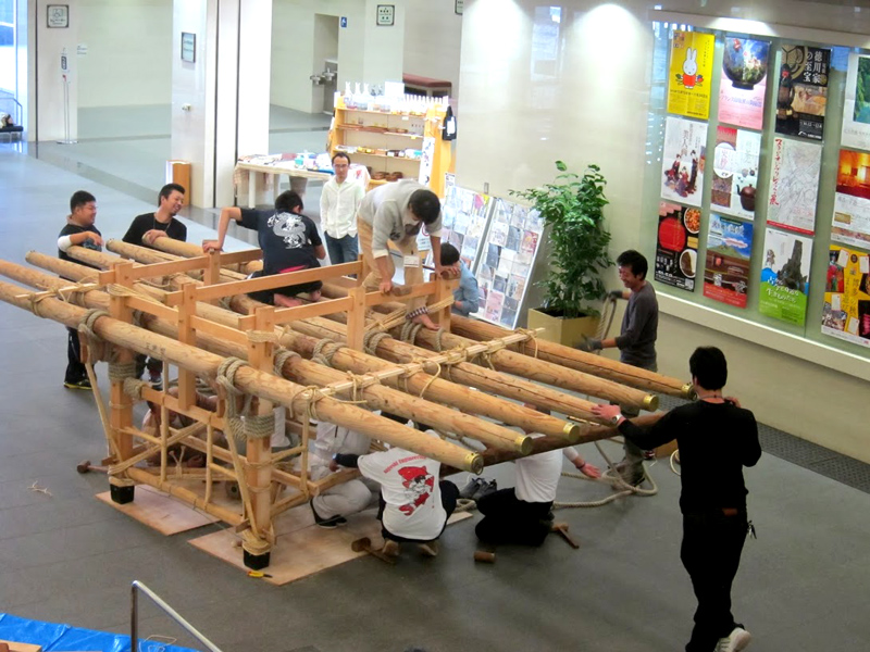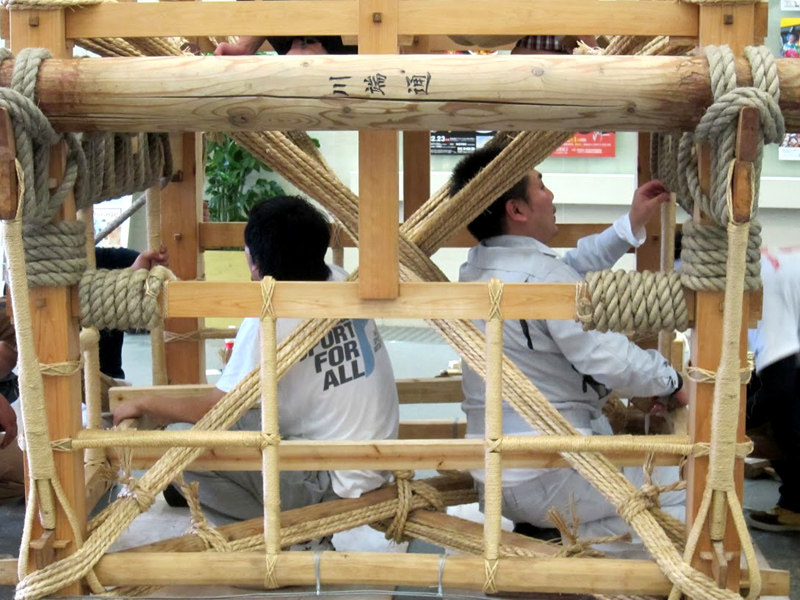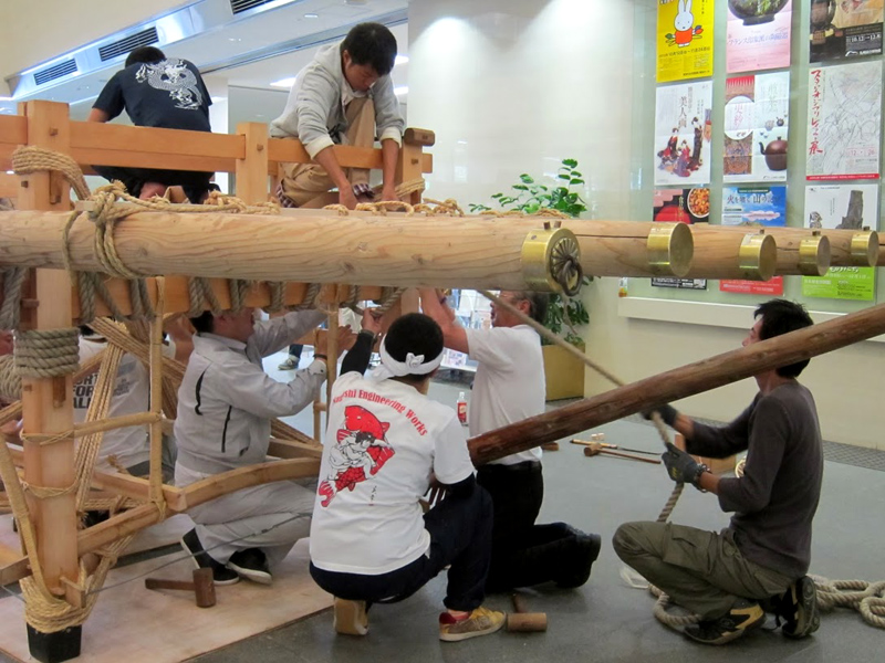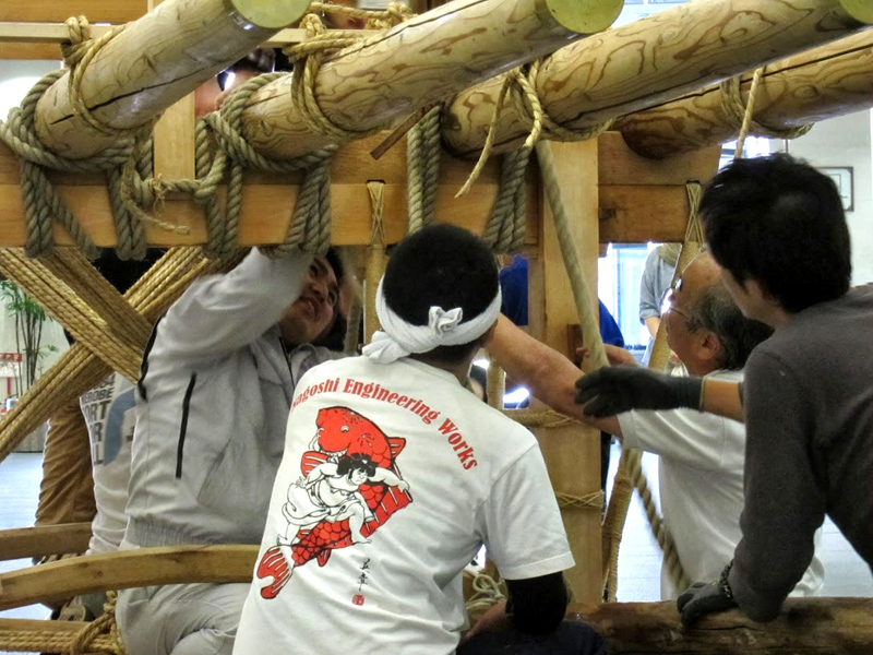 10月20日、福岡市博物館にて、明治時代の舁き山の棒締めが行われました。