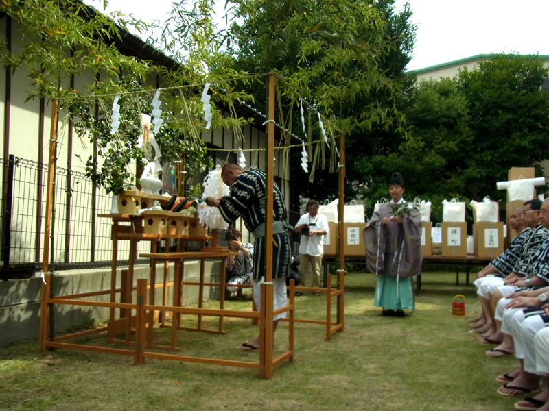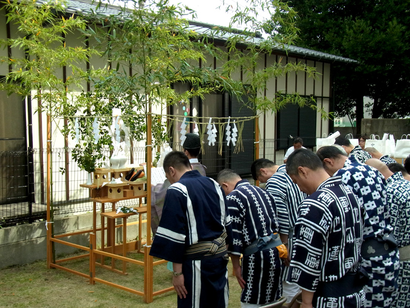 注連下ろしは飾り山一般公開の7月1日に執り行う行事ですが、恵比須流は旧暦に合せ1ヶ月早い6月1日に注連下ろしを毎年行います。