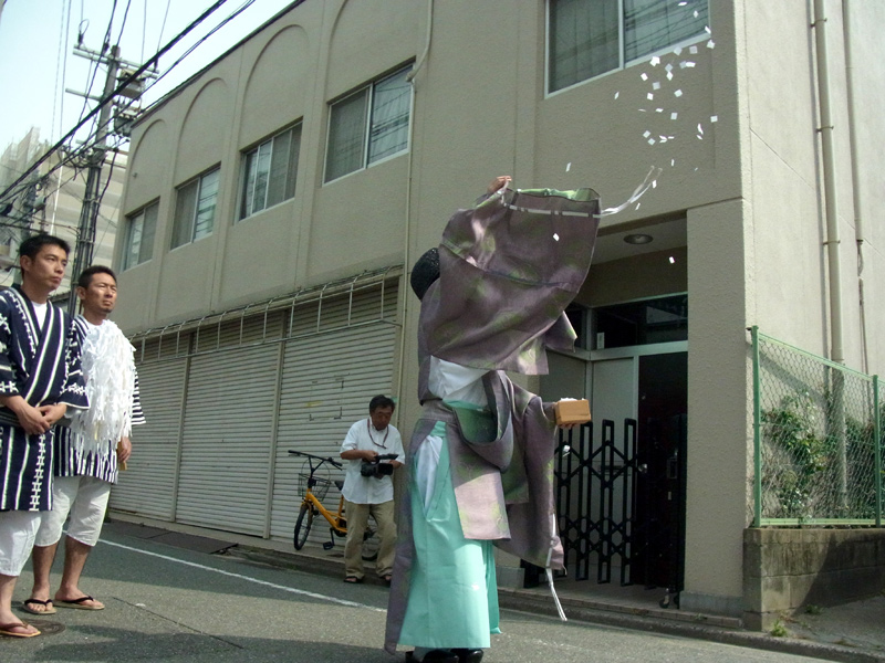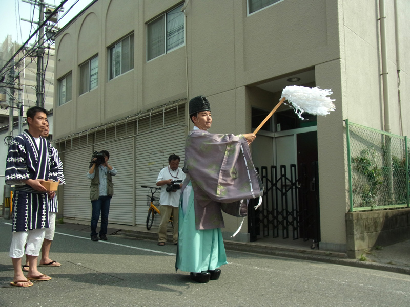 朝9時、櫛田神社神職による注連下ろしの儀が始まりました。
