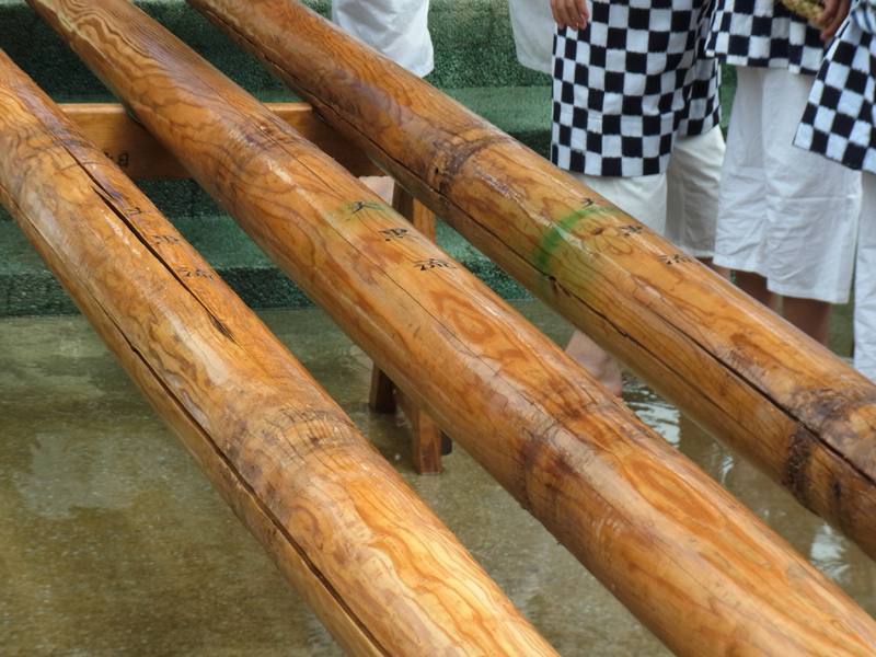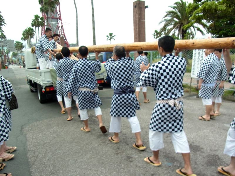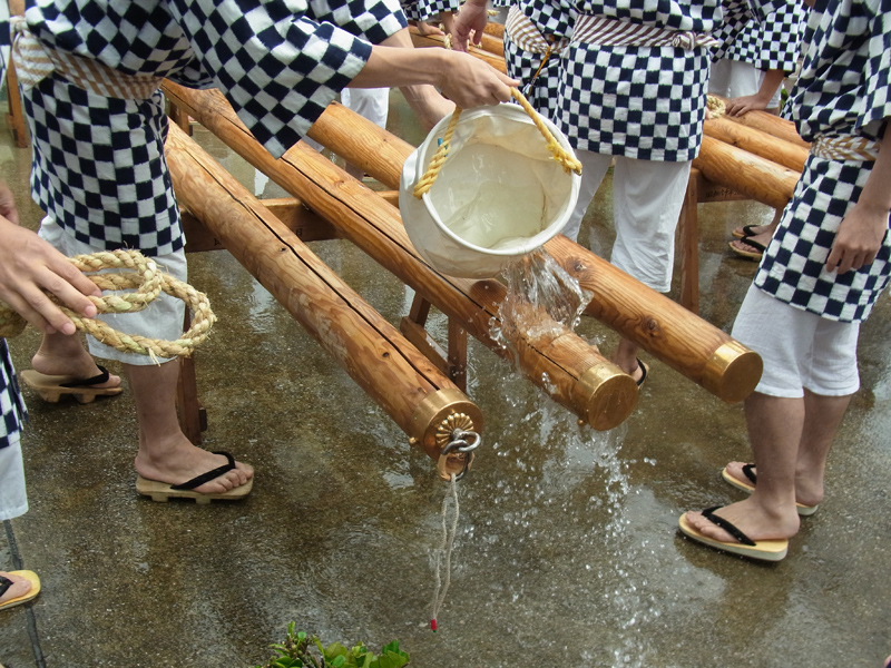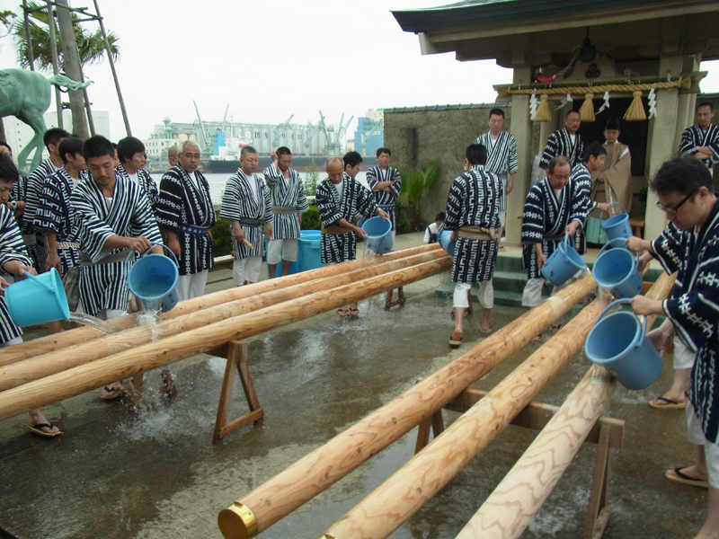 舁き棒は一年ぶりの登場。博多湾からお潮を組み上げます。