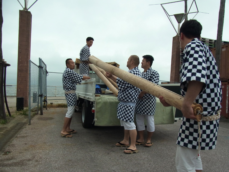 洗い清められた舁き棒は再びトラックに乗せられ、当番町へ。後日行われる棒締めを待ちます。