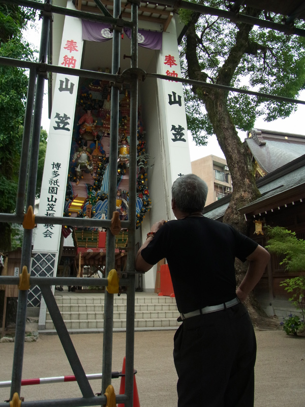 櫛田神社の飾り山は、(亀田さんが担当している)新天町の飾り山よりも大きいので、素山の大きさを確認しに来たとの事。