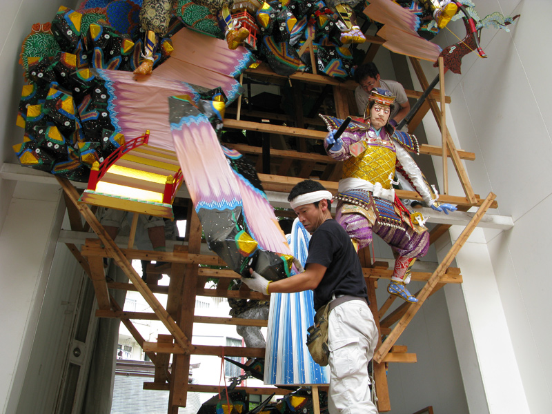 亀田さんは、弟子時代に櫛田神社の飾り山の制作加勢に入った事があるとの事。当時の櫛田神社の飾り山にはネットなどが張られていなかったため、