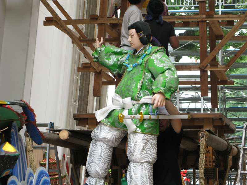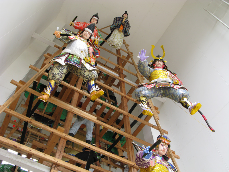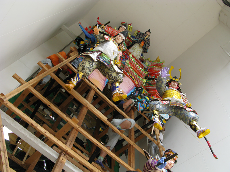 人形を除いた山の飾りが取り外された頃に、この飾り山を担当した田中勇さんが到着。人形の取り外しを始めます。