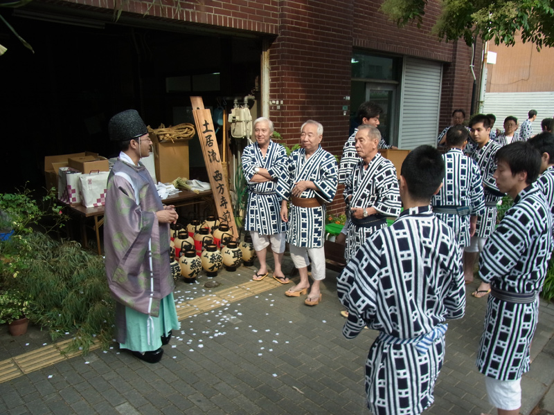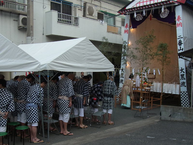 7月1日の始まりは、大黒流の注連下ろしからでした。あちらこちらで「おめでとうございます」の声が聞かれました。