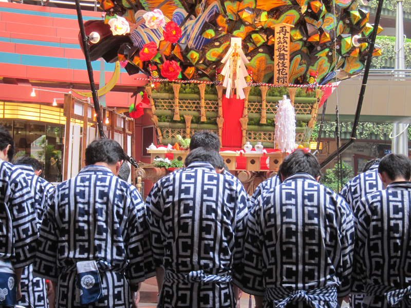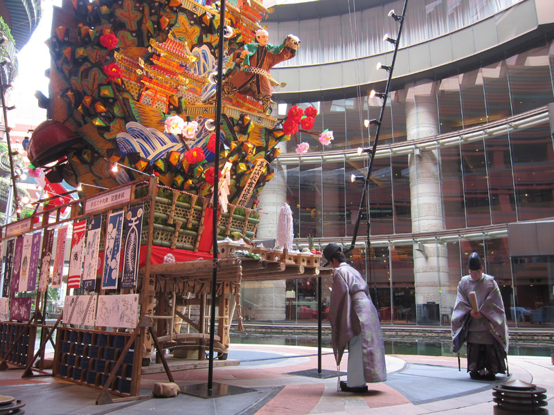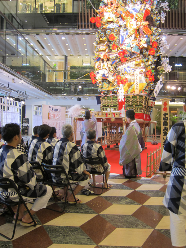 上川端通の御神入れと同時刻に、今年で18年目をむかえるキャナルシティの飾山の御神入れが行われました。