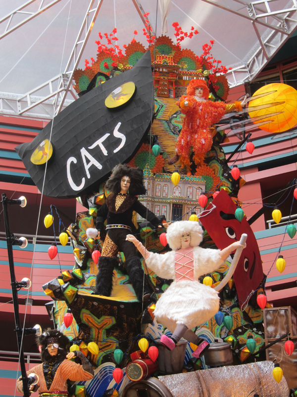 何と言っても今年の注目は、見送りのキャッツ。総務の古池善司さんは「キャナルはいろんなお客様や外国のお客様が来られるので、見てすぐわかる演目ということで劇団四季と相談してこうなりました。作るのに苦労したが、素晴らしい出来栄えになってとても満足しています。ぜひ見てください。」と話していただきました。