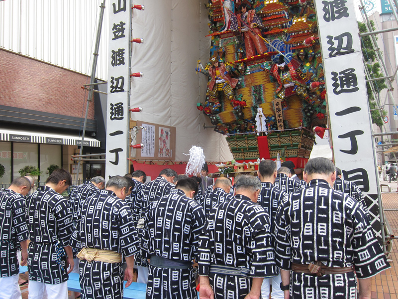 9時からは八番山 上川端通の御神入れ。本日初めての御神入れ神事です。八番山は50周年だけあってテレビ局の取材も入っていました。