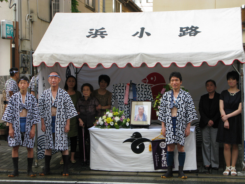 午後5時に舁き出した土居流は、流舁の終盤に追善山を行いました。祝いめでたと手一本の山笠らしい作法で山が大好きだった故人の冥福を祈りました。