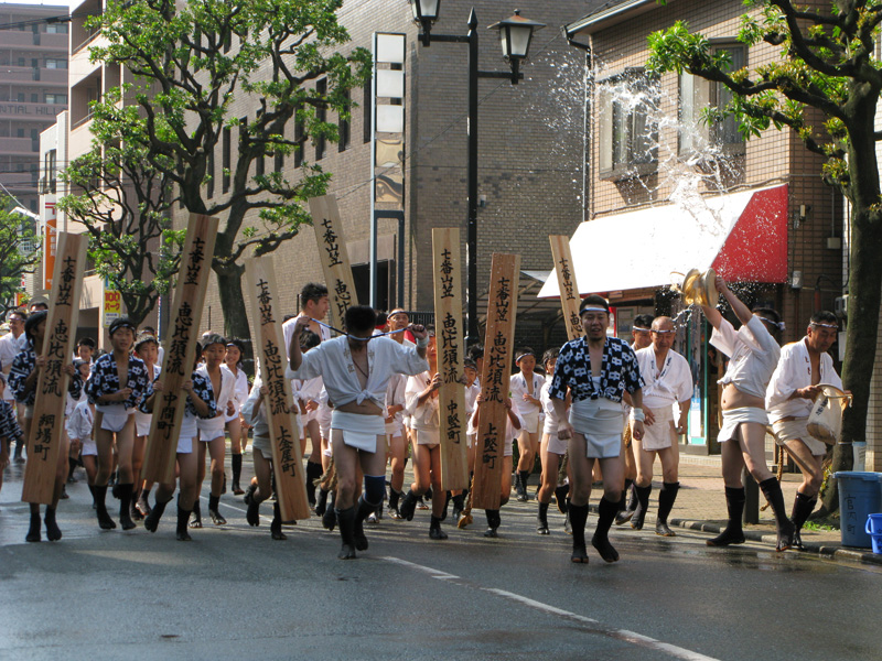 流舁山が終わると、博多の町は静けさと喧噪を湛えた不思議な時間が流れ始めます。追い山まであと2時間半と迫った博多の様子を14日からまとめて見ました。