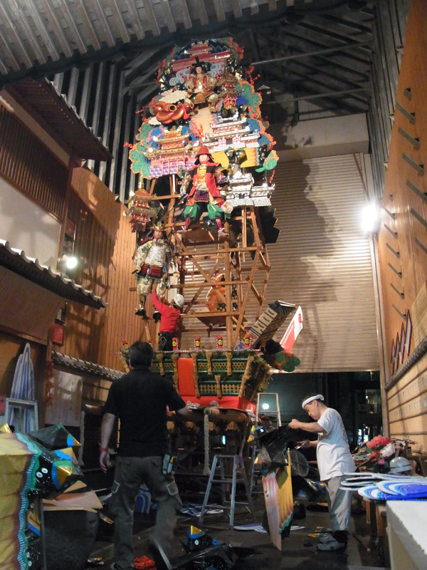 ▼1:40 東流の舁山が舁き出した後に、飾山が解かれ始める