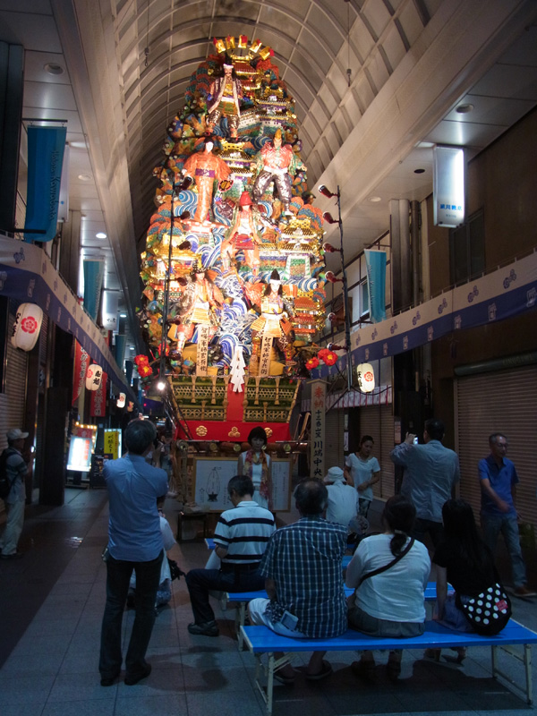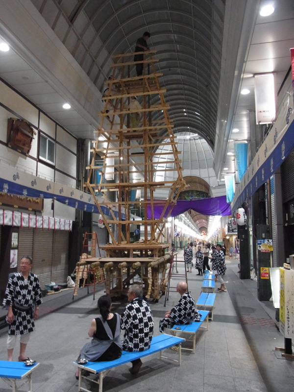 上川端商店街にある川端ぜんざい広場に展示されていた、昨年の八番山が崩されました。今年の八番山がここに飾られるのは18日との事。