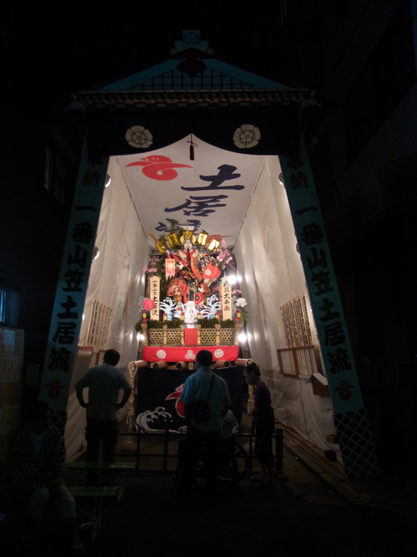 ▼22:40 千代流が舁山を山小屋の前に据える