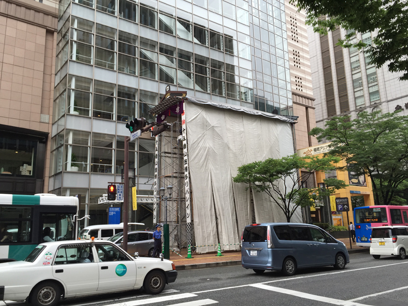 飾り山笠の小屋の組立始まってるなーって見てたら