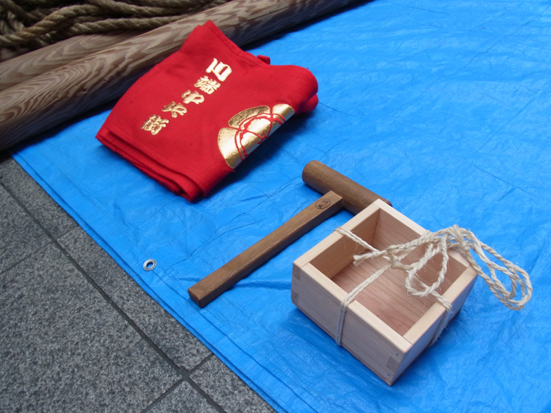 東流は本日早朝8時半より棒洗いを行い、午前9時より三井ビルにて棒締めを行いました。
