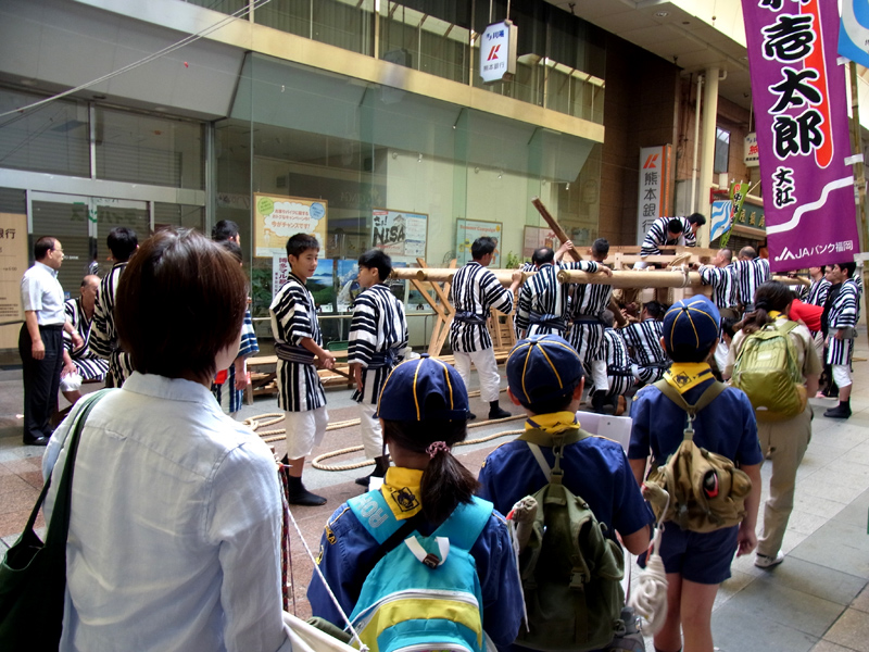 この日はボーイスカウトが見学に訪れており、男衆に棒締めの質問をする様子も。