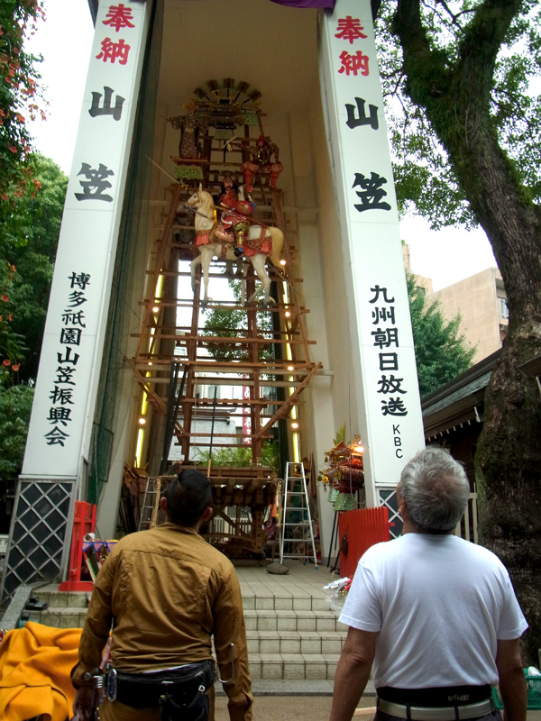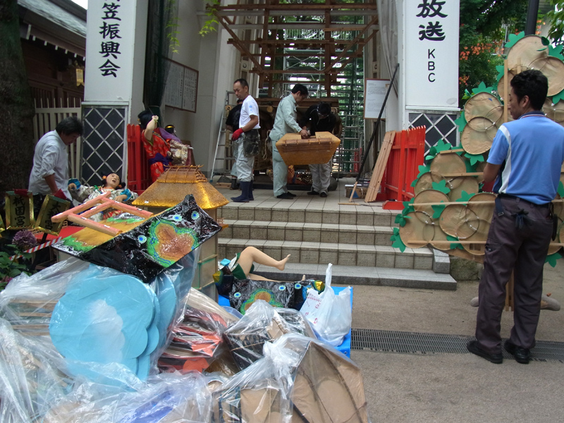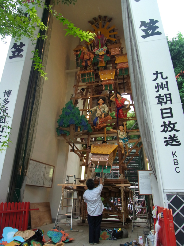 本日6月24日、櫛田神社の飾り付けが始まりました。山が解かれたのは6月9日でしたので、飾山に飾りが戻ってきたのは3週間振りとなります。