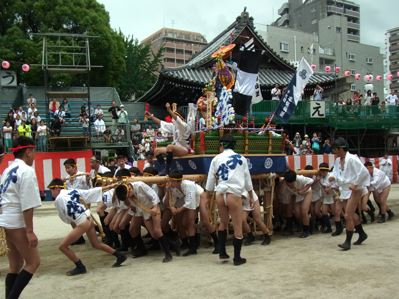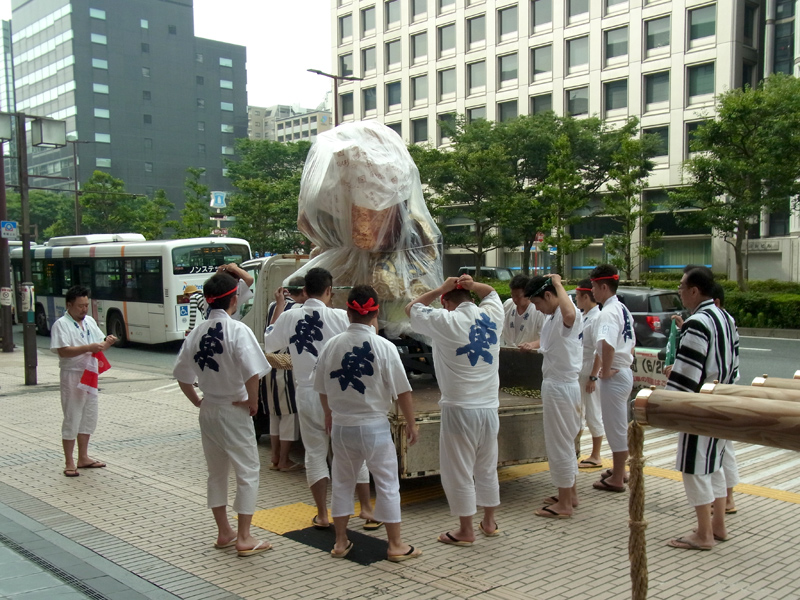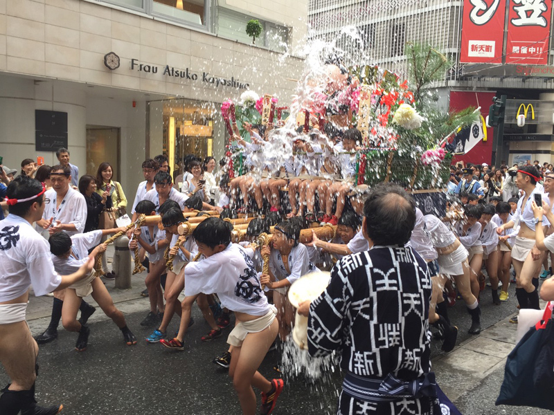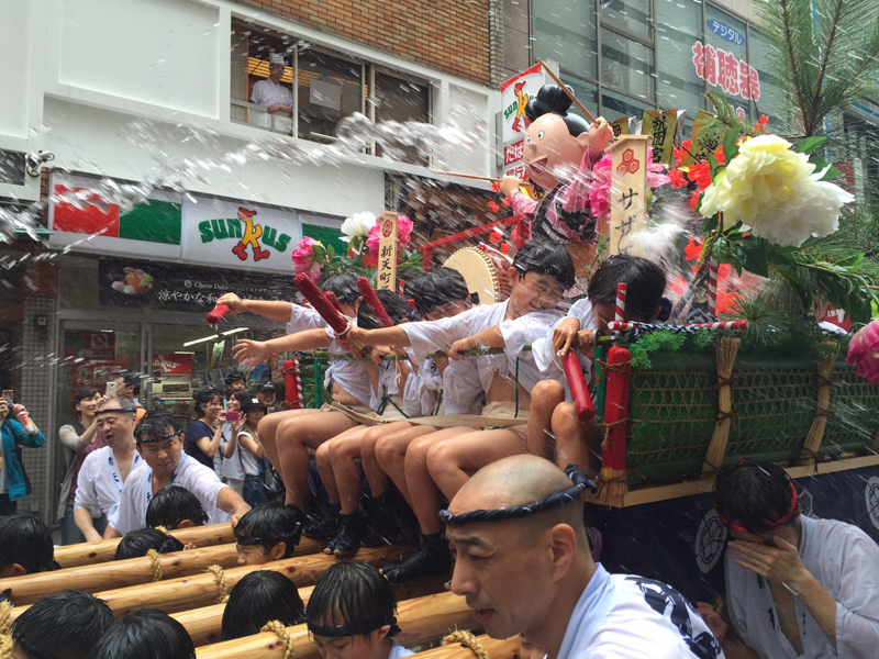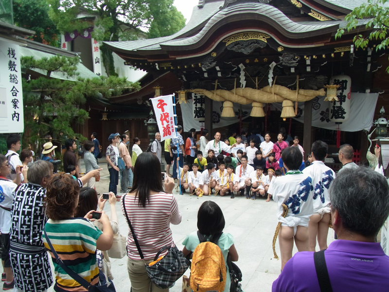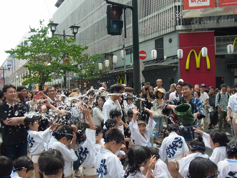 昨日7月6日は天候にもまずまず恵まれ、子供達に勢水がバンバン飛ぶ1日に。出番を待っている子供達にお世話をする男衆が勢水を掛けるたびに子供達の明るい悲鳴が響き渡り、観客の笑みを誘いました。