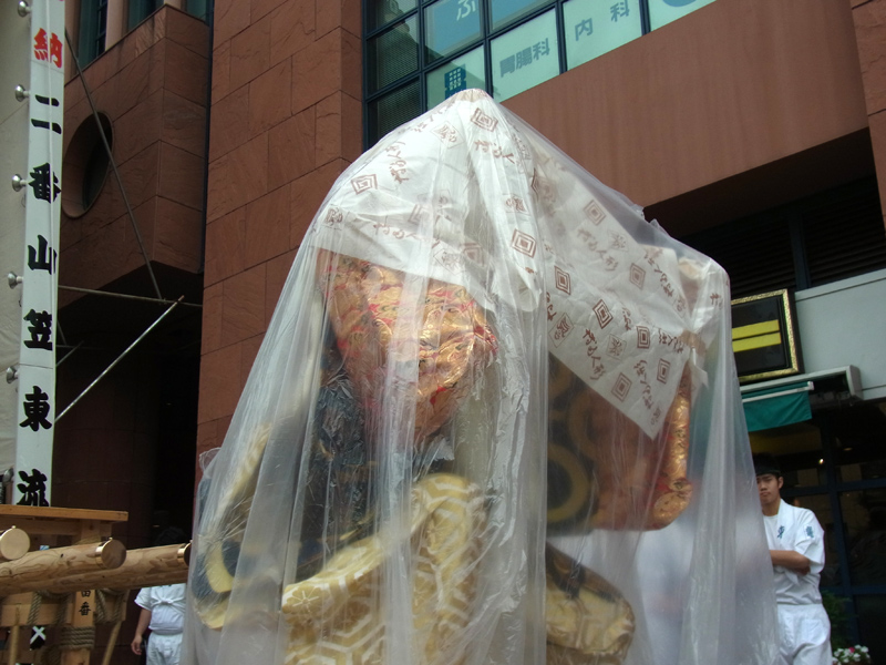 奉納目録が授与された後、舁山の飾りは呉服町ビジネスセンタービルの入り口に移動して一般公開されました。この舁山は、7月10日の流舁まで閑かに出番を待ちます。