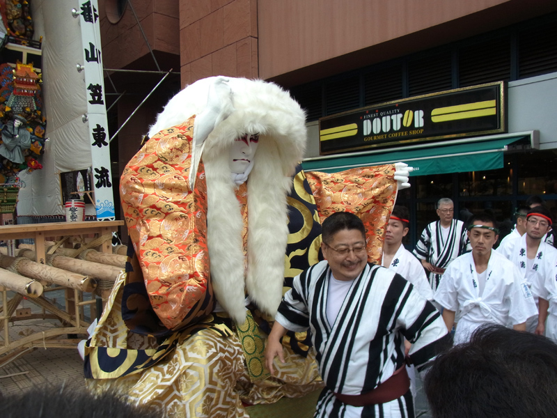 午前9時から始まった飾り付け作業。白水人形工房で2ヶ月掛けて制作された舁山の人形がいよいよ到着です。人形にはビニールが被せられており、人形の魂でもある顔にはさらに紙が掛けられて見えることはありません。