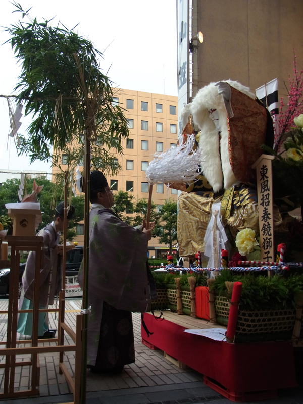 浄め払いの儀で舁山と飾山の表、見送りが浄められた後、玉串を捧げて無事御神入れの神事が終了しました。