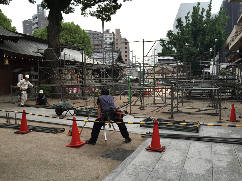 山笠桟敷席、もうここまで組み上がってる(^^)byけい pic.twitter.com/HuV5YvA6jb