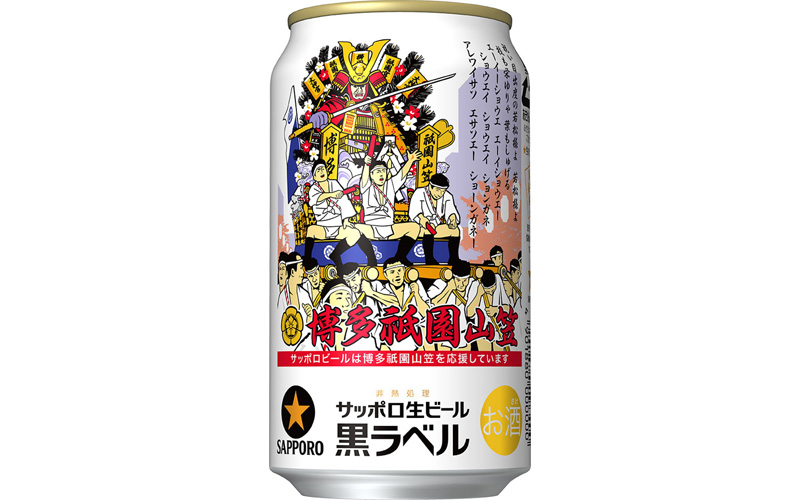 サッポロビール黒ラベル「博多祇園山笠」缶が本日より発売開始しました。パッケージは、祝いめでたの歌詞と勇壮な山笠と舁き山の迫力あるデザインとなっています。福岡県を中心とした九州8県で数量限定発売となります。