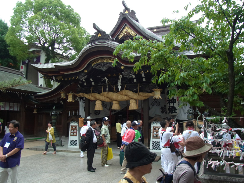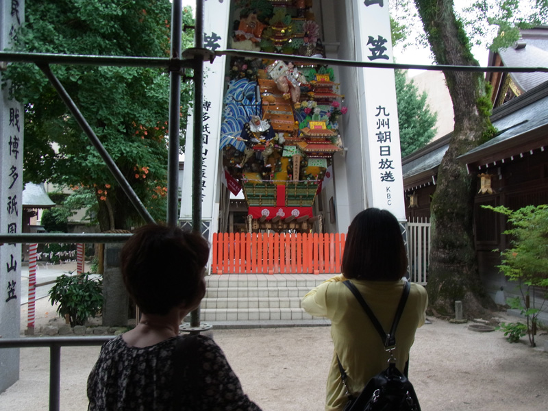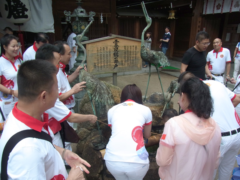櫛田神社も観光客でとても大賑わい。霊泉の水を飲んで大騒ぎする一幕も。