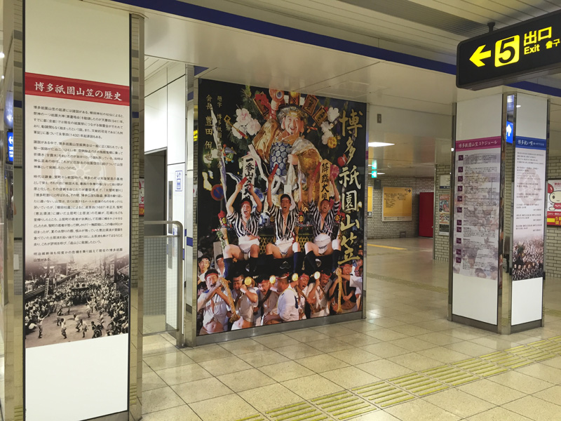 地下鉄中洲川端駅の川端方面の改札口に展示されている山笠PRコーナーが、7月1日を前に今年の内容に変更されていました。
