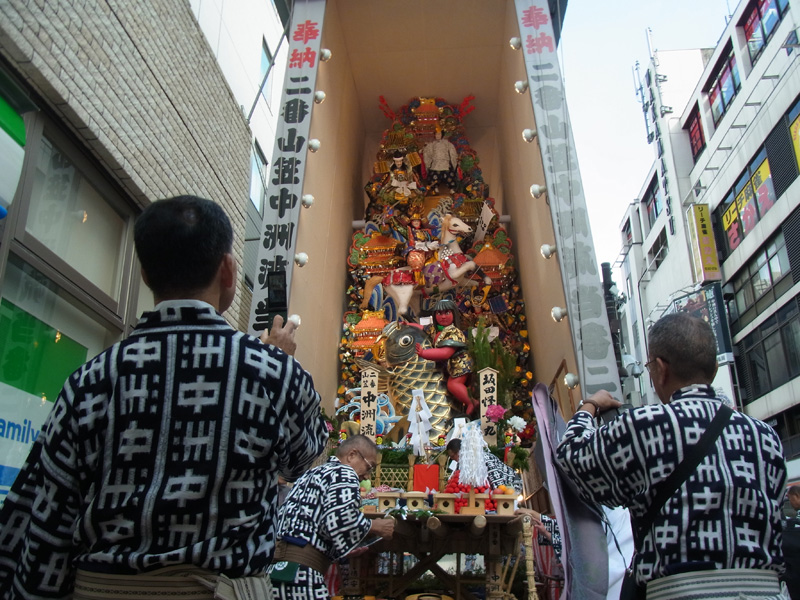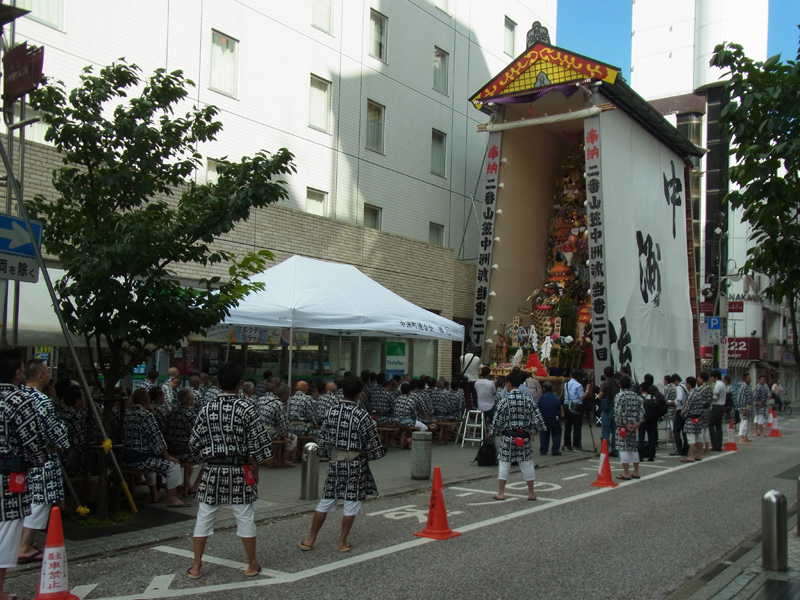 また、同じ午前9時より、同じ上川端商店街の川端中央街の飾り山も御神入れが行われました。