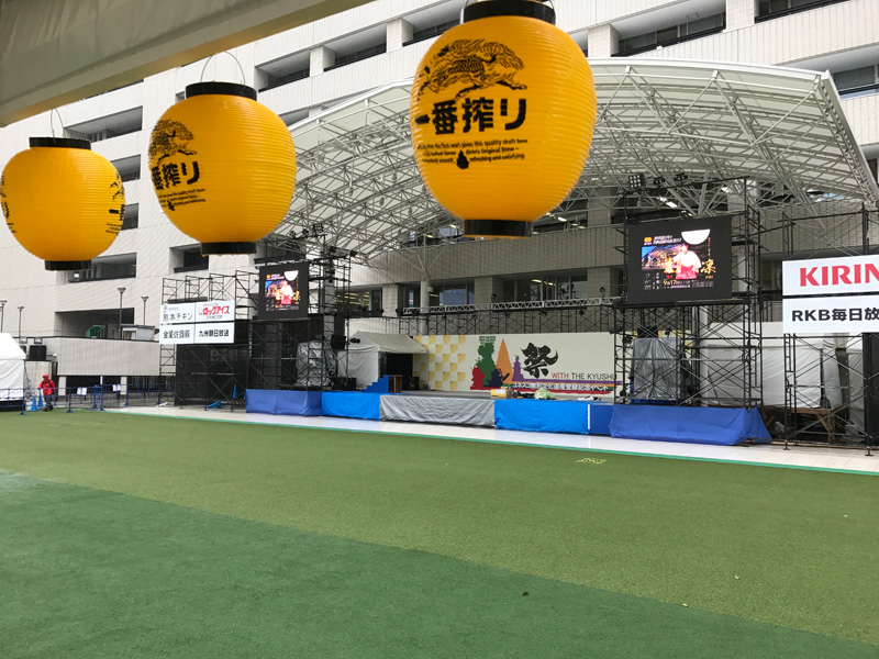 特別巡行が行われる「祭 WITH THE KYUSHU」まであと1日。イベント会場となる福岡市役所周辺では、明日からのイベントに向けての準備が急ピッチで進んでいます。