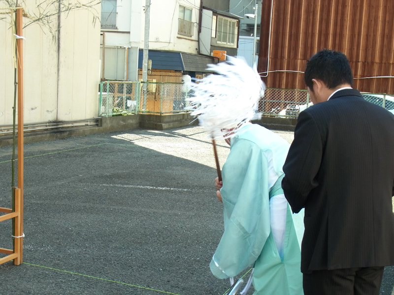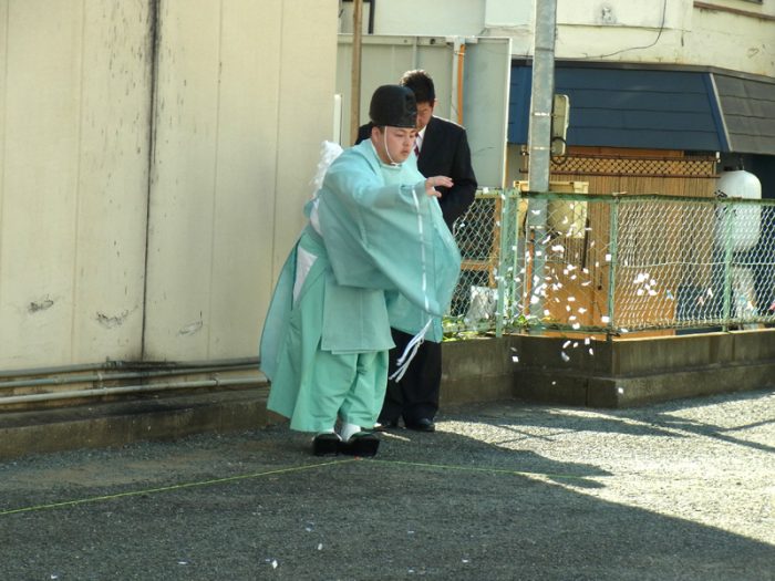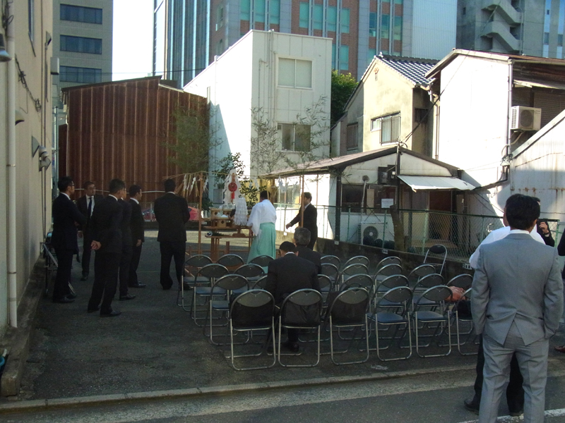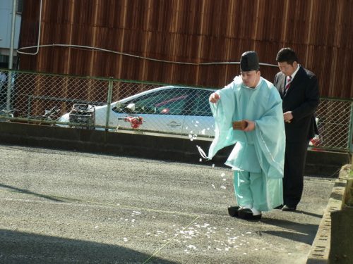 午前7時過ぎから関係者が集まり、午前8時丁度に地鎮祭が始まりました。