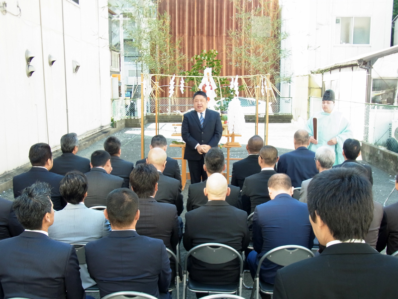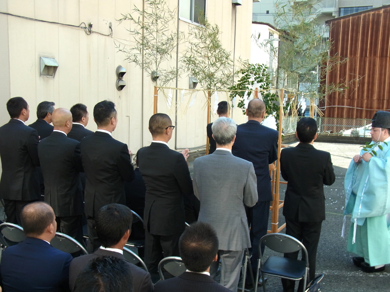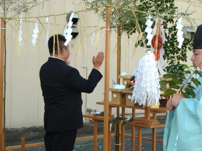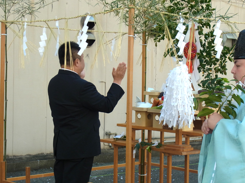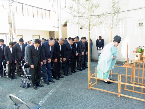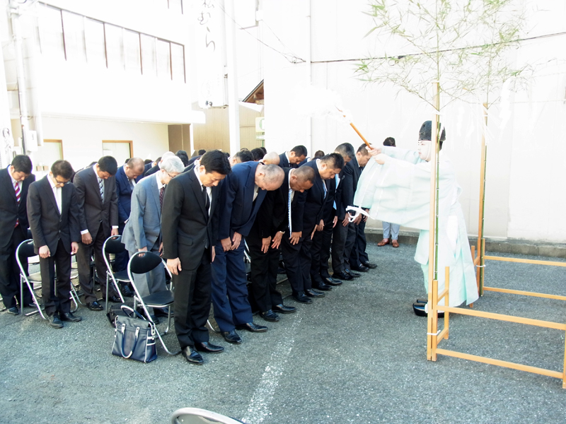 最後に波多江総務をはじめとして恵比須流の役員の方々が玉串奉奠を行い、地鎮祭は無事終了しました。