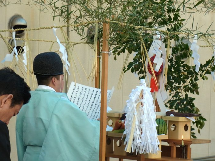 恵比須流は旧暦の7月1日に当たる6月1日に注連下ろしを行うため、準備期間前の5月末に地鎮祭を行う習わしです。