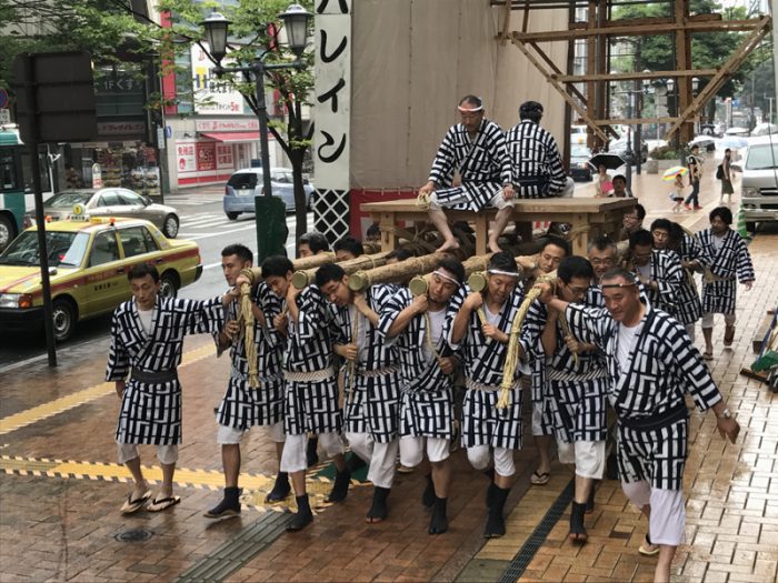 梅雨前線の影響で雨が降るあいにくの一日となった6月24日(土)、早朝から各流で山笠の準備が行われました。
