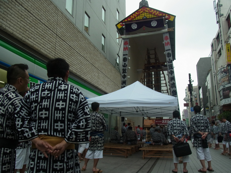 突然始まった山笠の運行とオイサの掛け声にに、通りすがりの人たちはびっくり。