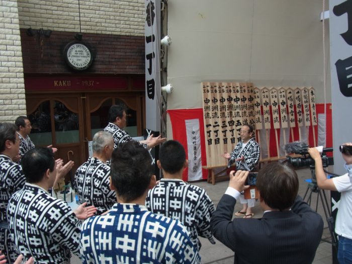 天神一丁目・博多リバレインが棒洗いを行いましたが、川端中央街が10時より、新天町が10時半より棒洗いを行いました。